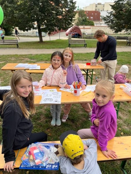 Včera jsme s dětmi z Růžového oddělení zavítali na akci s názvem Zakončení léta, kterou pořádal odborný svaz KOVO. Atmosféra byla od první chvíle veselá – hned při příchodu děti zaujal skákací hrad a hudba, která dodávala celé události tu správnou energii. Děti během odpoledne plnily úkoly na čtyřech sportovních stanovištích, kde si vyzkoušely skákání v pytlích, driblování, střelbu na koš či chůzi s pingpongovou pálkou. Za každý splněný úkol získaly razítko a na závěr je čekal balíček s překvapením.
