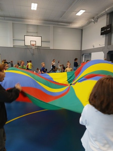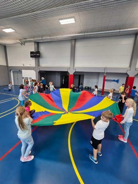 V pátek 26. září 2025 se ve školní družině konala celodružinová akce s názvem Zábavné duhové odpoledne. Děti si užily pestré a hravé odpoledne plné soutěží, smíchu a spolupráce. Na devíti barevně laděných stanovištích si vyzkoušely různé pohybové, logické i týmové úkoly. Házely kroužky na cíl, hrály si s padákem, navigovaly kamaráda se zavázanýma očima, třídily předměty, přenášely balónky, skládaly puzzle, tvořily „živý stroj“ nebo závodily ve skákání v pytli.