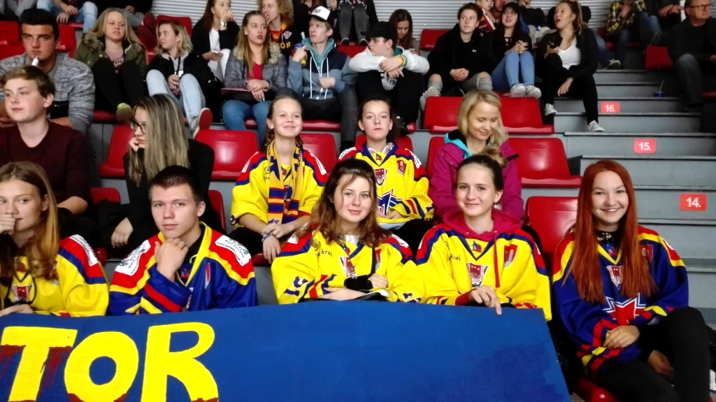 Žáci 9. B a 8. A se zúčastnili akce "třídy fandí motoru". Děti z naší školy vytvořily transparent, který vyráběly při výtvarné výchově s paní učitelkou Dolejší. Všichni tvůrci se sešli před zimním stadionem, kde se domluvili na prezentaci svého plakátu. V průběhu první třetiny si naši školu vybrala kamera a ukázala náš plakát na "kostce". Během celého zápasu jsme se aktivně zapojovali do fandění společně s domácím kotlem. O přestávce nechyběly brambůrky ani klobása z místního bufetu. Po skončení zápasu na nás čekal střelec večera Václav Nedorost. Po společném fotografování jsme se dokonce podívali do šatny HC Motor, kde byla po vítězném zápase výborná nálada.