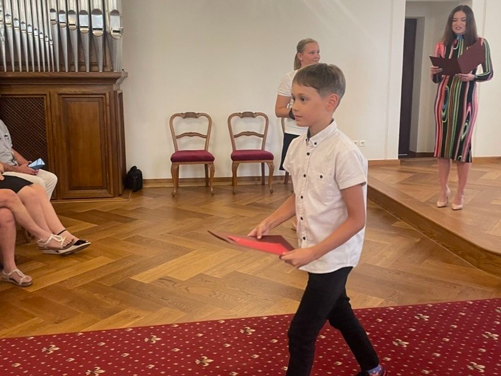 Slavnostní setkání úspěšných žáků českobudějovických škol s primátorkou města D. Škodovou Parmovou. Oceněný byl Zdeněk Koubek 2.C, mistr světa v bike trial.