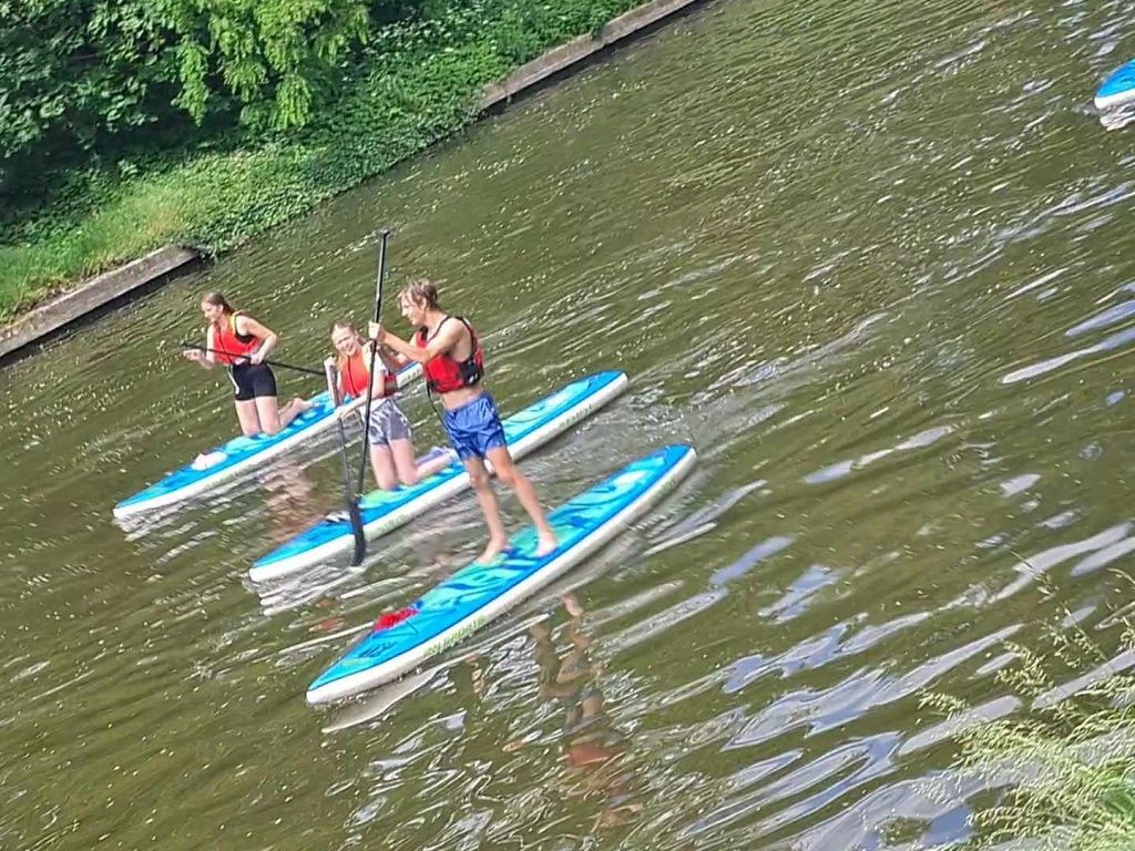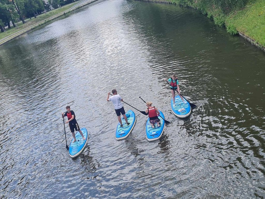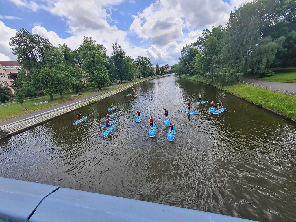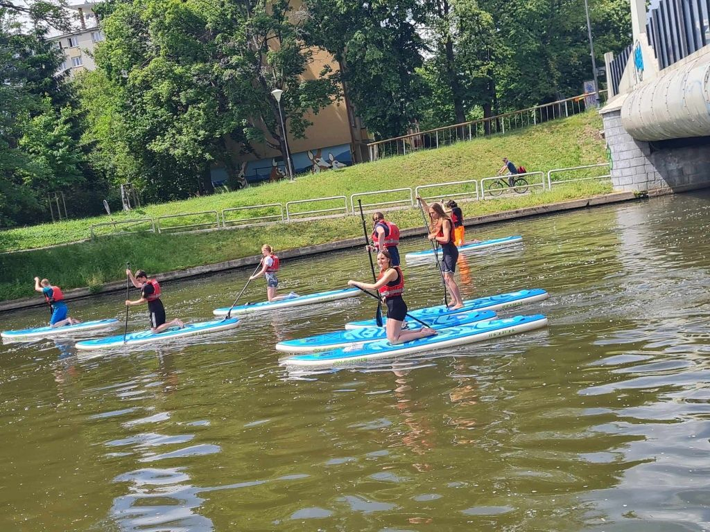 Děti si užívaly cvičení na vodě a zkoušely různé pohyby a triky na paddleboardech. Tento netradiční přístup k tělocviku je bavil a zároveň posiloval jejich rovnováhu a obratnost. Byla to skvělá zábava a zároveň skvělý způsob, jak se udržet ve formě. Na výuku přispívá zřizovatel Magistrát České Budějovice.