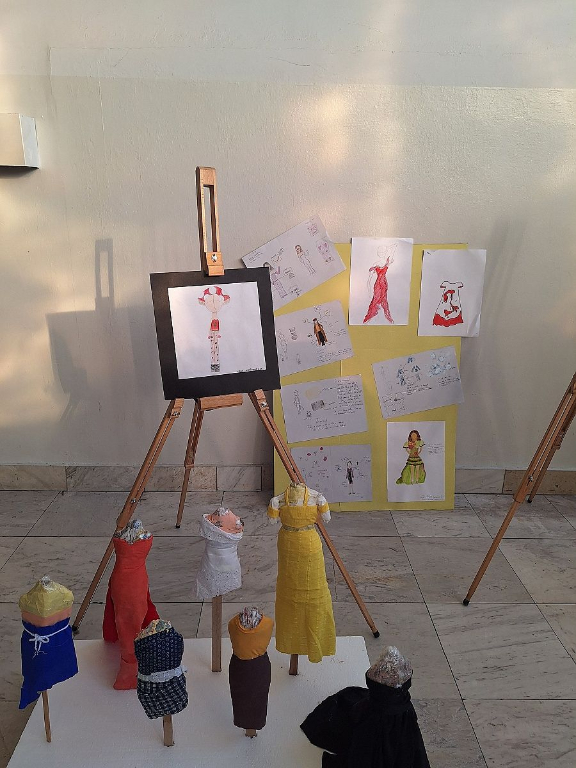 Děti představily své návrhy oděvů – ať už ve formě kreseb, koláží nebo prostorových modelů vytvořených z látek, papíru a různorodých materiálů. Výstava ukázala široký záběr inspirací, ze kterých děti čerpaly – od módních trendů přes přírodní motivy až po ztvárnění živlů a zvířat.