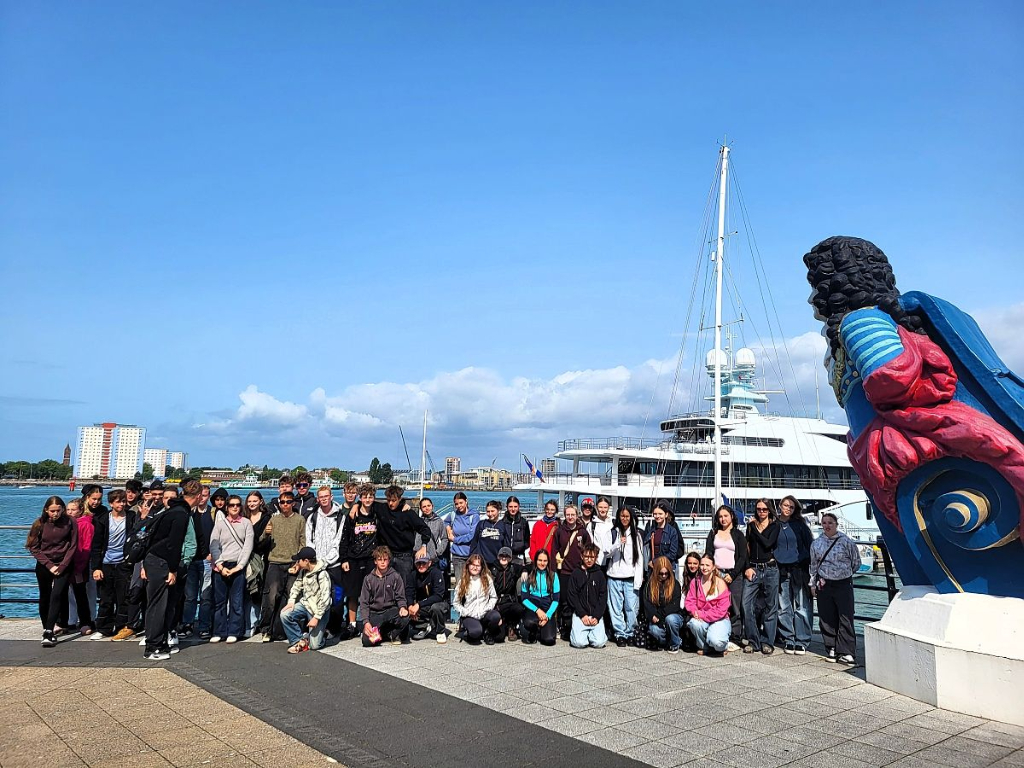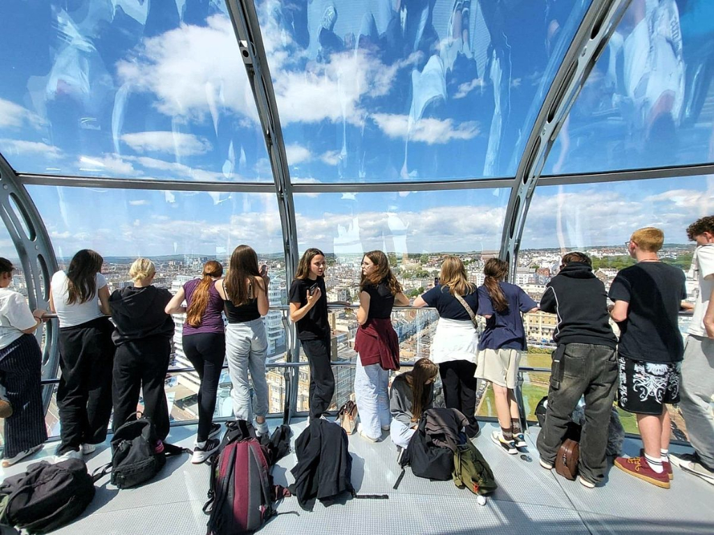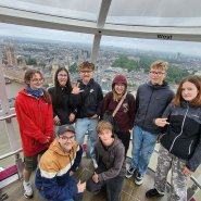 Vyvrcholením zájezdu byl, samozřejmě, Londýn. I přes nevlídné počasí jsme se projeli po řece Temži, viděli nultý poledník, a celé město jsme si prohlédli z výšky z London Eye. Nezapomněli jsme ani na genius loci celého Londýna, Big Ben. Zamávali jsme jejímu veličenstvu králi Karlu III. přes okna Buckingham Palace, nakoupili na Leicester Square a projeli se londýnským metrem.