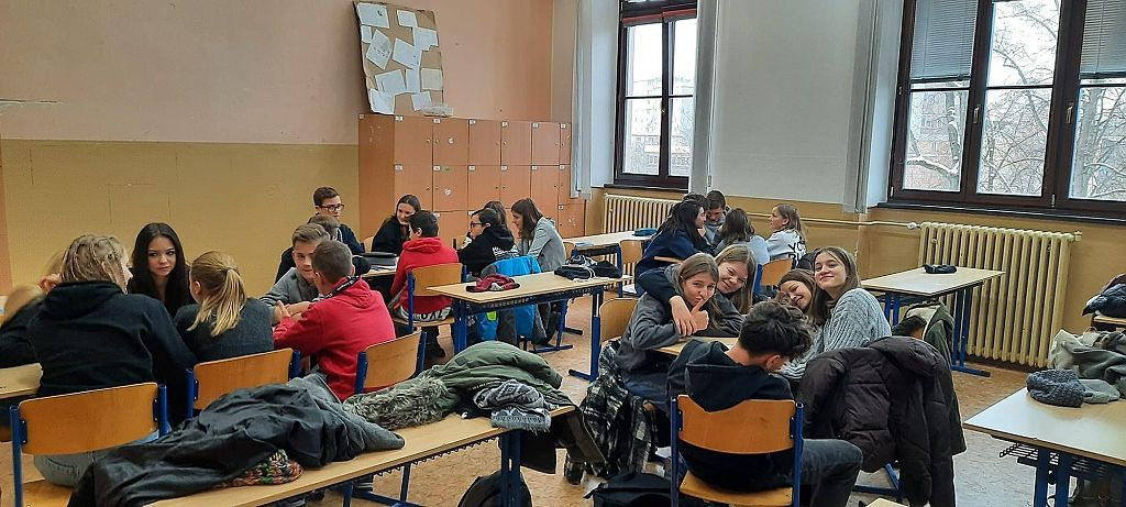 Zde trochu textu: Dne 20. 12. 2022 nás navštívili žáci z Musikmittelschule Freistadt, kteří společně se třídou 9.A hovořili ve skupinkách o podobnosti německého a českého jazyka, přičemž se vzájemně učili zajímavá a zábavná německá i česká slova.