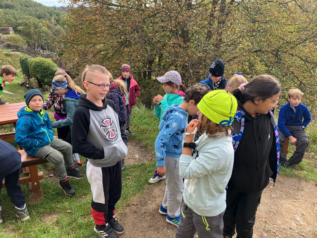 Naše 4. třídy se vydaly na výukový program pořádaný společností Cassiopeia v Třísově, kde se přenesly v čase a pozorovaly, jak se zde žilo v dávných dobách.
