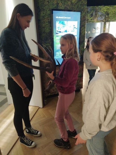 Ve čtvrtek 15.1. se Fialové oddělení školní družiny vydalo do muzea prozkoumat stálou expozici zaměřenou na přírodu. Prohlédli jsme si vycpaná zvířata, potrénovali se v rozpoznávání hub, potěžkali si paroh.