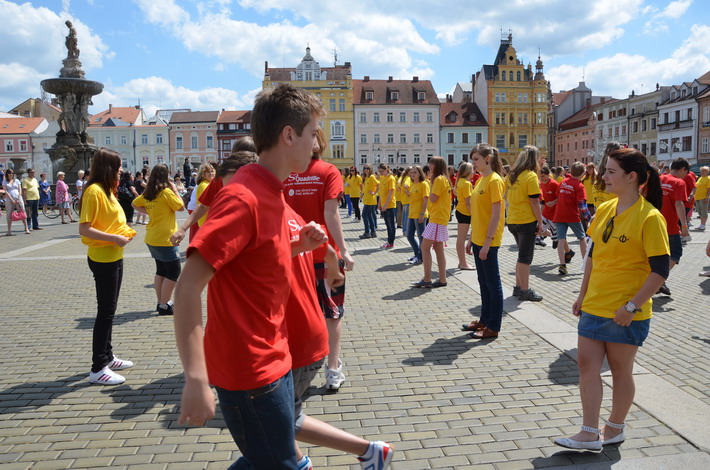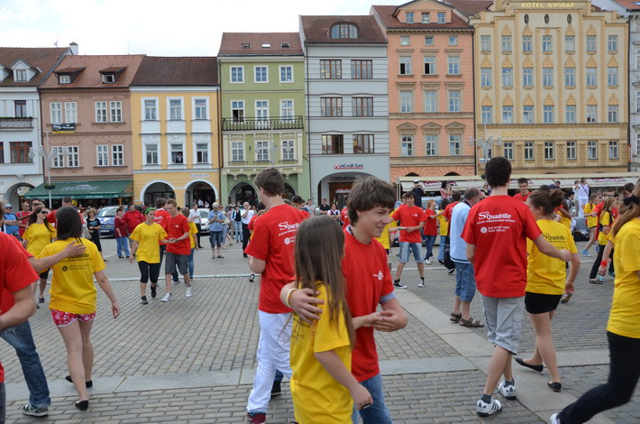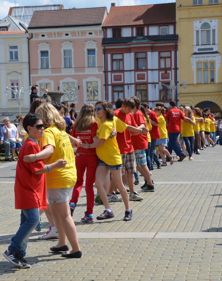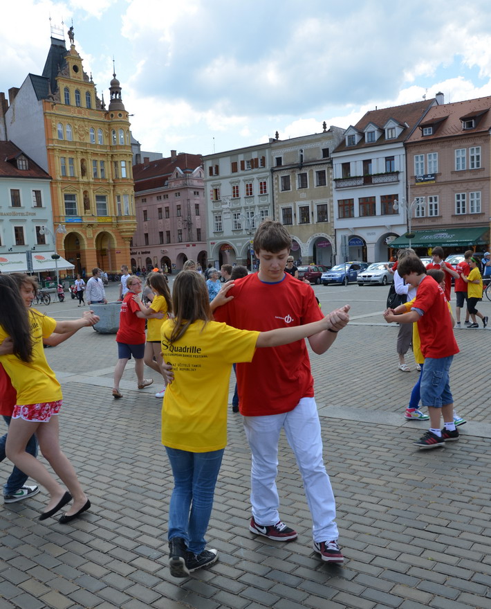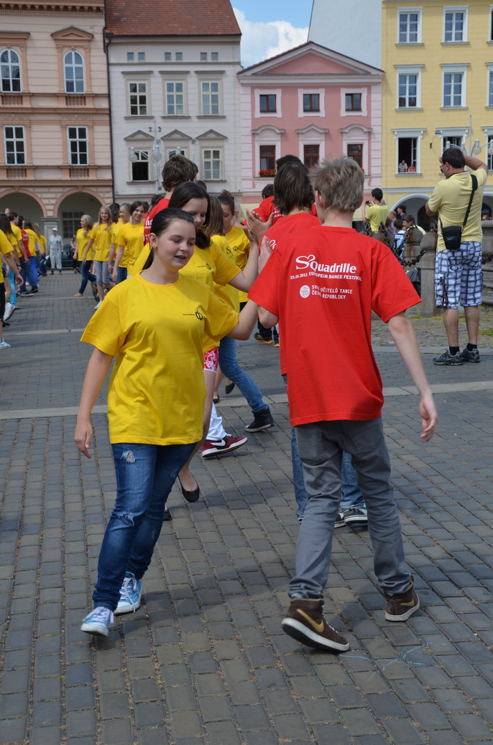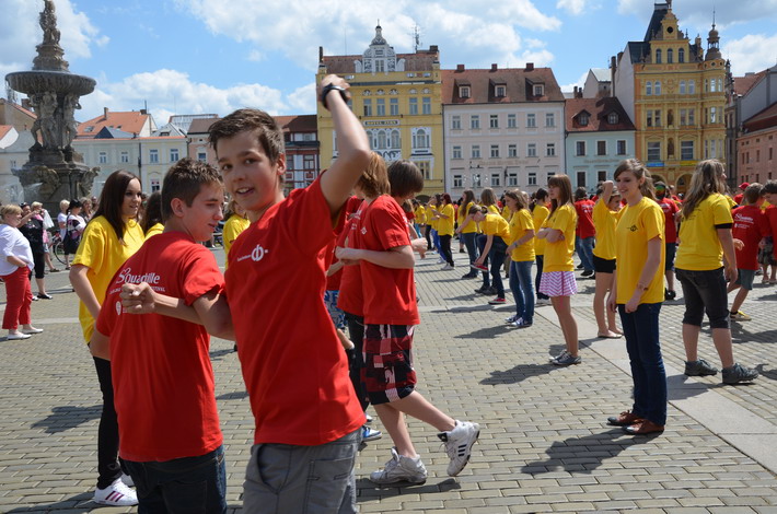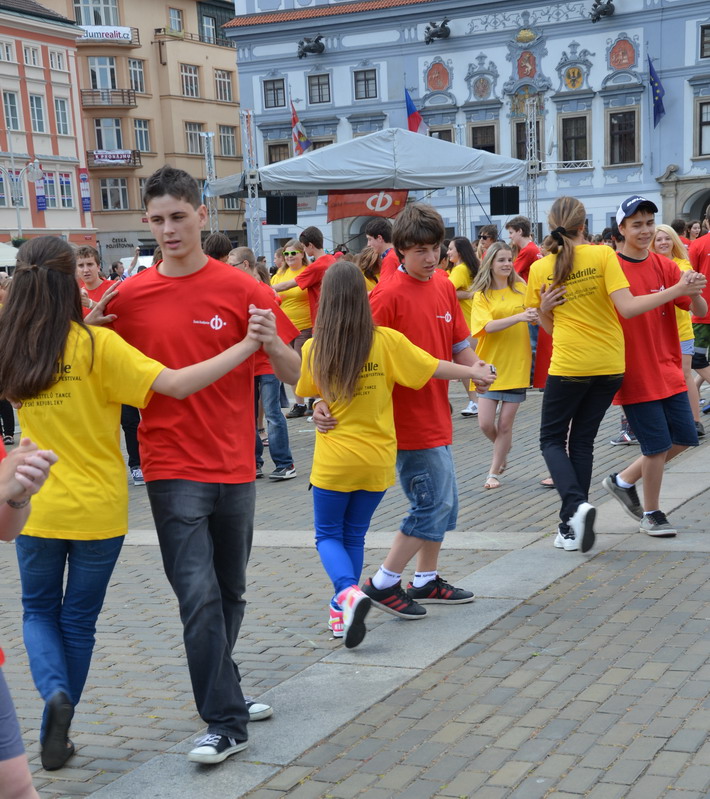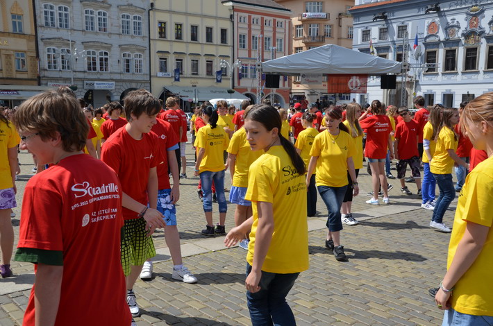 V červnu 2012 se naše škola zapojila do českobudějovického rekordu nejpočetnějších párů tančících na náměstí čtverylku.