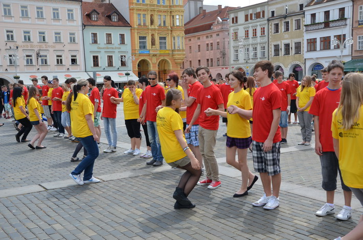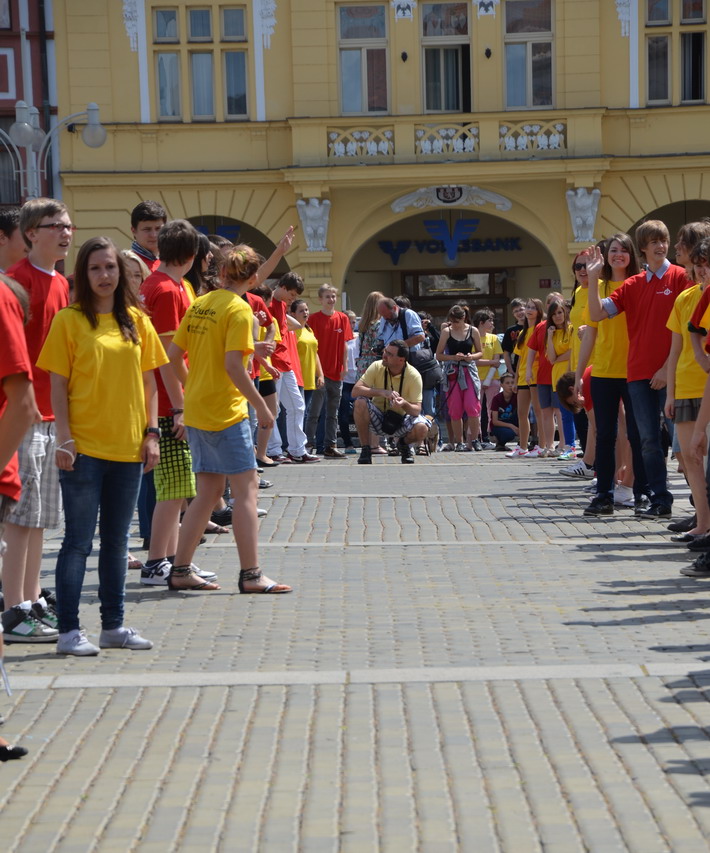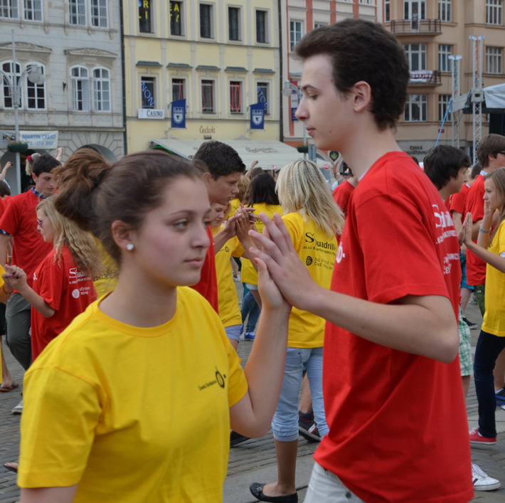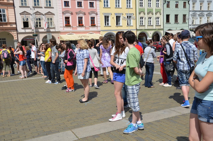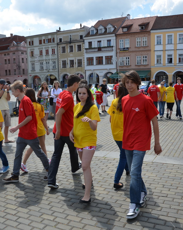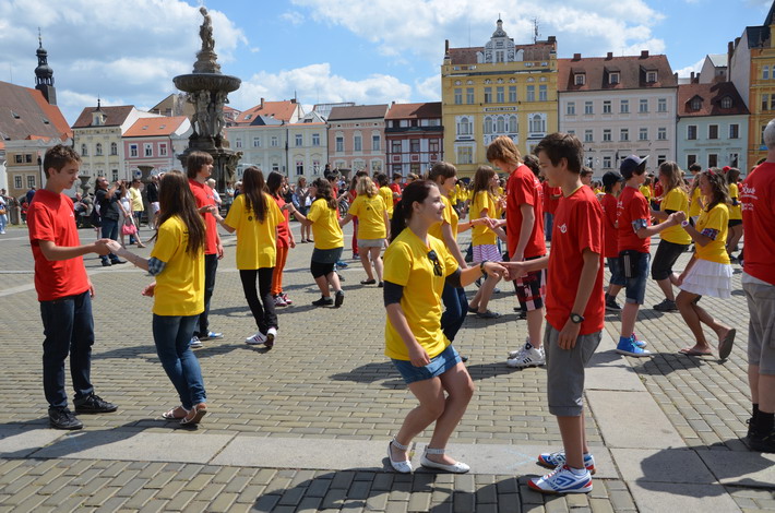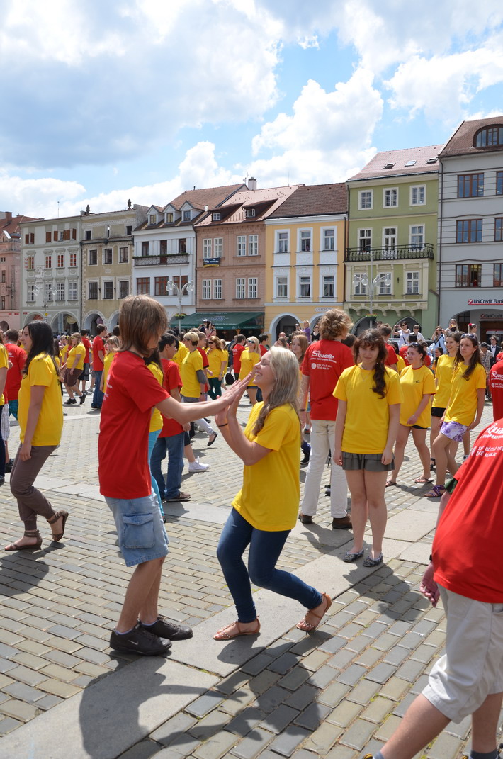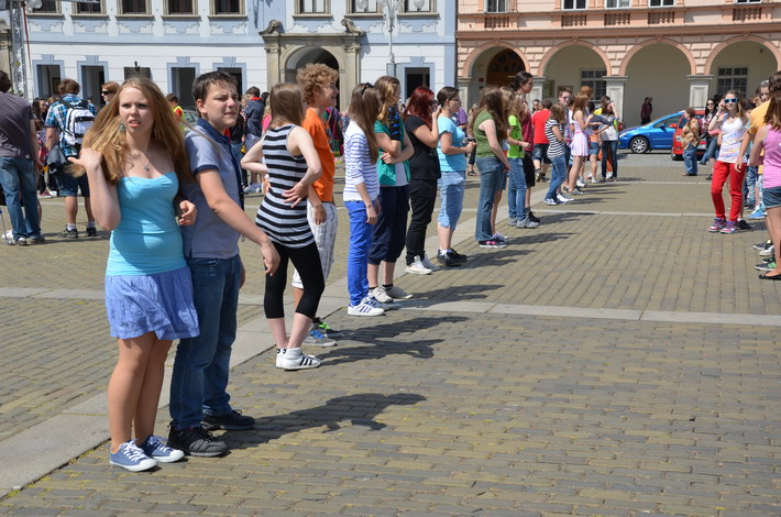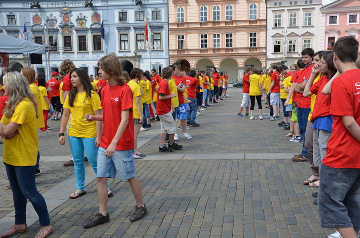 V červnu 2012 se naše škola zapojila do českobudějovického rekordu nejpočetnějších párů tančících na náměstí čtverylku.