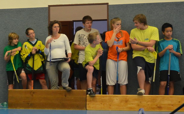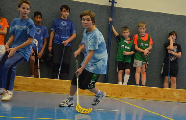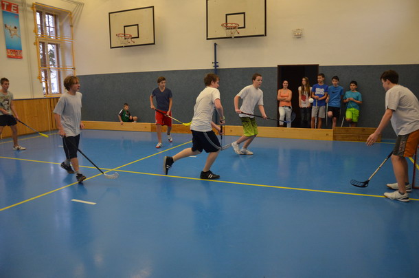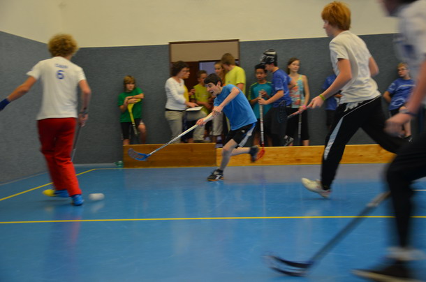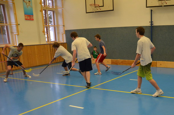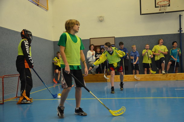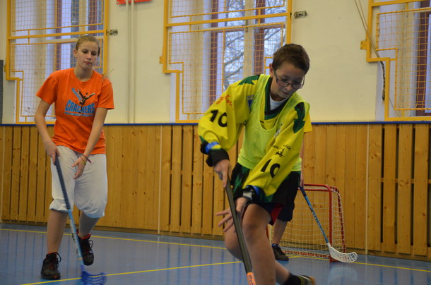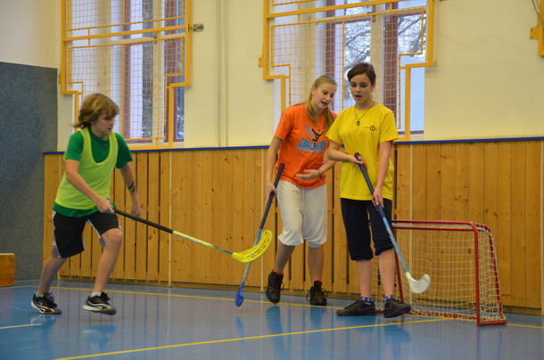 Už tradiční mikulášský turnaj ve florbale pořádá paní učitelka Hromadová.