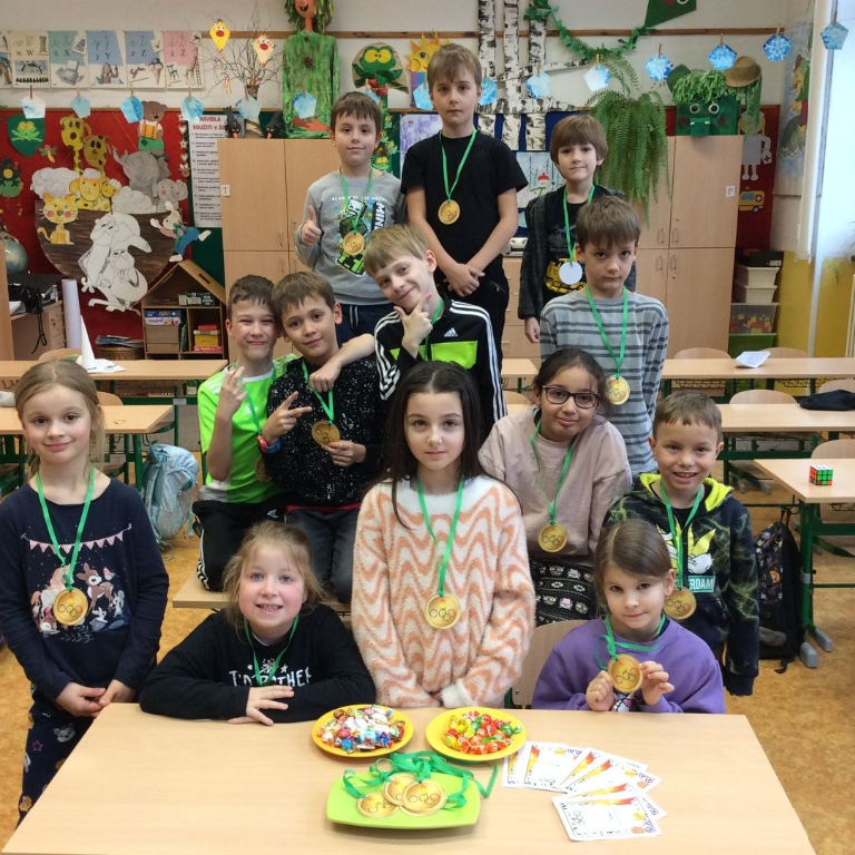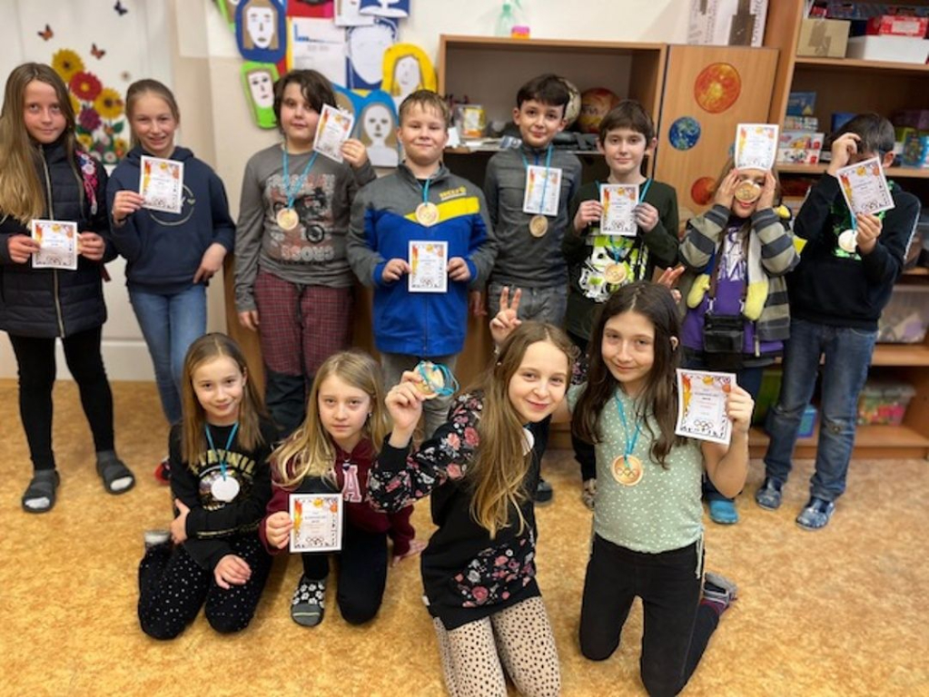 V pátek 20. 1. 2023 se všechna oddělení ŠD sešla v tělocvičně u symbolu olympijských her, olympijské pochodně. Navzdory aktuálním podmínkám, které zimním sportům nepřály, jsme s dětmi využili možnost vyzkoušet si zimní sporty netradičně ve vnitřních prostorách školy. Mezi olympijskými disciplínami nakonec nechyběl ani biatlon, sjezd na prkně, hokej nebo slalom. Naše heslo znělo: „Není důležité zvítězit, ale užít si to“ a to se určitě podařilo, proto na závěr tohoto netradičního klání byli všichni účastníci odměněni zlatou medailí.