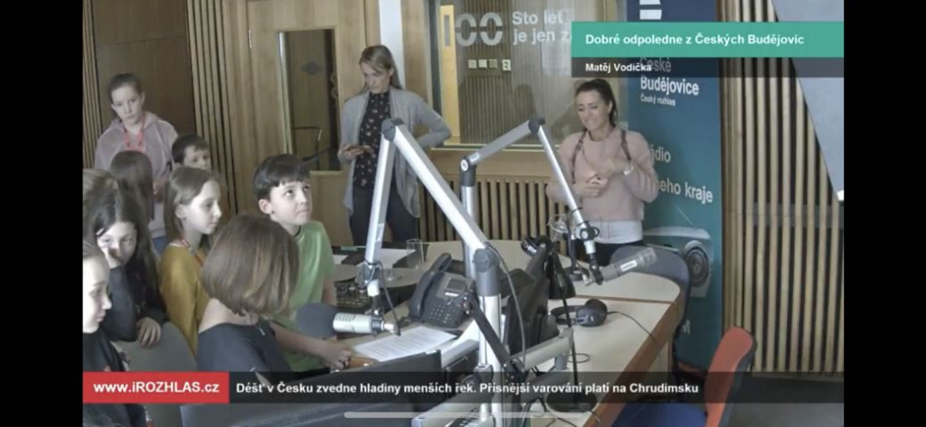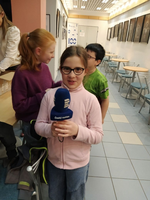 Hned po velikonočních prázdninách jsme s dětmi z Bílého, Fialového a Tyrkysového oddělení šli na návštěvu k sousedům - do Českého rozhlasu. Uvítali nás ve velkém nahrávacím sále, kde jsme získali informace o fungování rozhlasu a akustice, poté jsme vyrazili na další průzkum budovy. V nahrávacím studiu s námi měl trpělivost pan mistr zvuku, vyzkoušeli jsme si mluvit do mikrofonu a společně pořídili krátkou nahrávku. V dalším studiu nám půjčila svůj mikrofon milá paní moderátorka a my jsme měli dokonce možnost přímo v živém vysílání pozdravit své blízké a všechny posluchače. Odcházeli jsme plni nových zážitků a zkušeností - snad nám tedy rodiče odpustí, že jsme se do školy vrátili trochu později, než bylo domluveno.