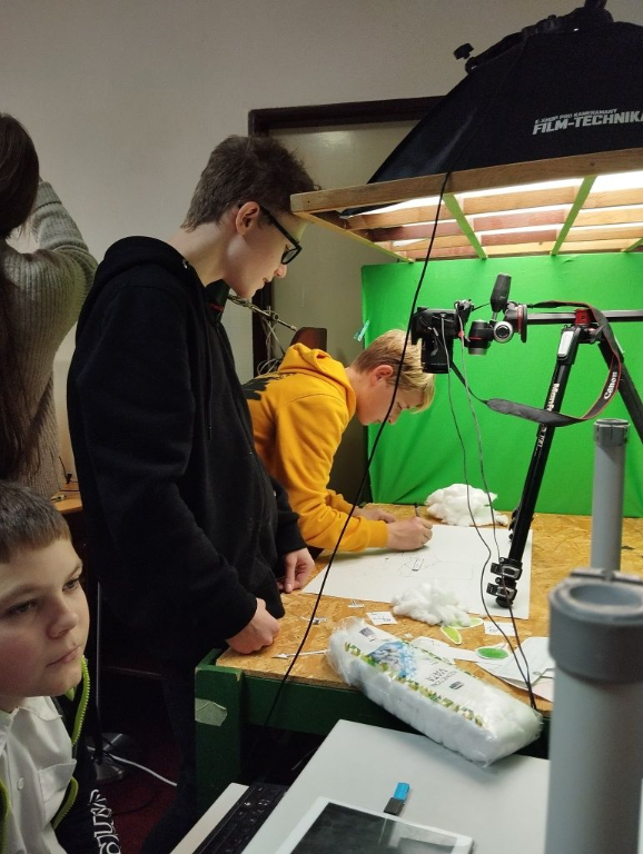 7.12.2023 se v Českých Budějovicích konala závěrečná prezentace projektu Příběhy našich sousedů, ve kterém naši školu reprezentovali žáci 8.B Matyáš Wagner, Michael Valenta a Tomáš Hnilička. Náš tým měl za úkol hledání pamětníka, zpracování otázek k jeho životu, natočení rozhovoru a následně si tým zpracoval svůj příběh pamětníka do krátkého animovaného videa. Techniku animace si kluci vyzkoušeli na workshopu v Českém Krumlově, který vedl animátor Ondřej Nový. V prosinci nakonec prezentovali svoji několikaměsíční práci na slavnostním večeru, kde se představily i další 2 týmy ze středních škol a jeden skautský oddíl. Na první fotografii je tým ZŠ Dukelská s pamětníkem Janem Novotným při závěrečné prezentaci.