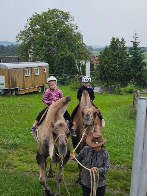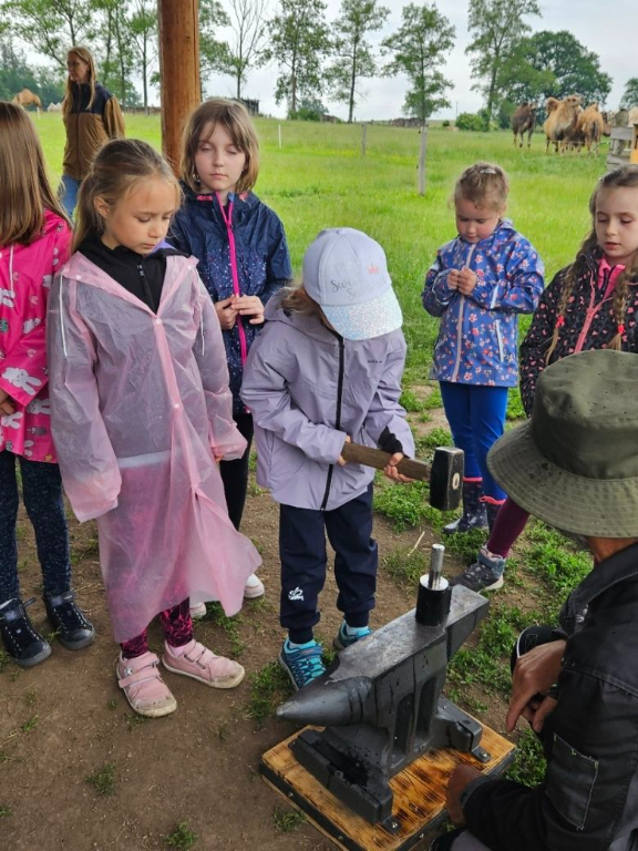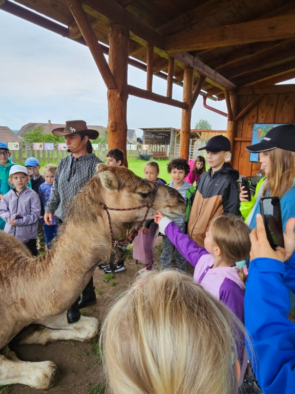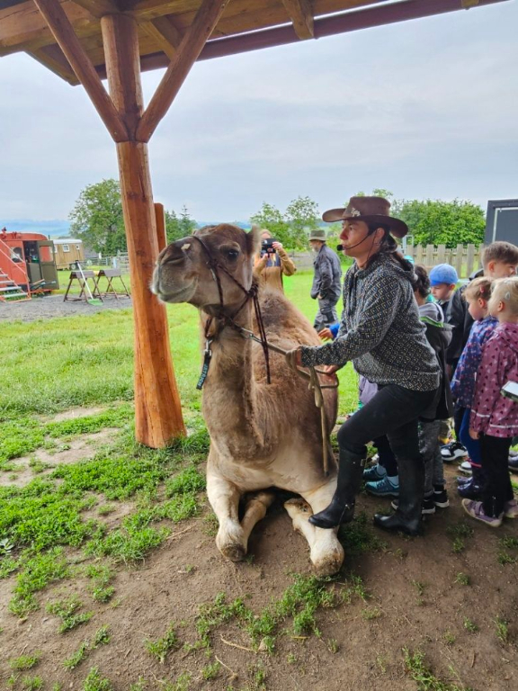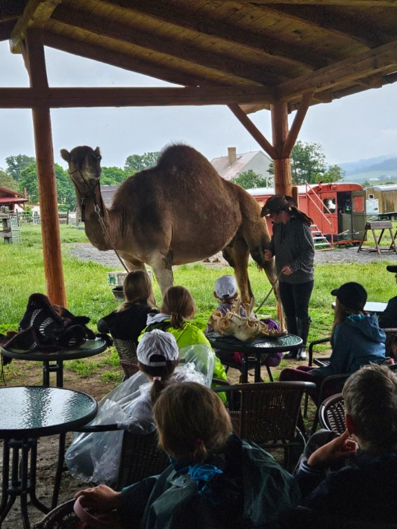 Nedávný výlet za odměnu pro žáky 1. stupně přinesl den plný dobrodružství a nových poznatků. První zastávkou byla velbloudí farma v Záhosticích, kde děti čekal program Zlatá karavana. Děti se dozvěděly mnoho zajímavého o velbloudech. Cestou za králem hledaly poklad a plnily různé úkoly. Velkým zážitkem bylo ražení mincí a samozřejmě jízda na velbloudech, kterou si nenechaly ujít ani naše paní vychovatelky. Další zastávkou byla kozí farma, kde děti zkusily dojení koziček a ochutnaly domácí sýr. Po krátkém odpočinku a nezbytné hygieně si děti pochutnaly na čerstvě opečených buřtech a užily si společné chvíle. Nechyběly ani nezbytné nákupy suvenýrů, které dětem budou připomínat tento úžasný den. Den plný radosti a nových zážitků se všem líbil a stal se nezapomenutelným zážitkem.