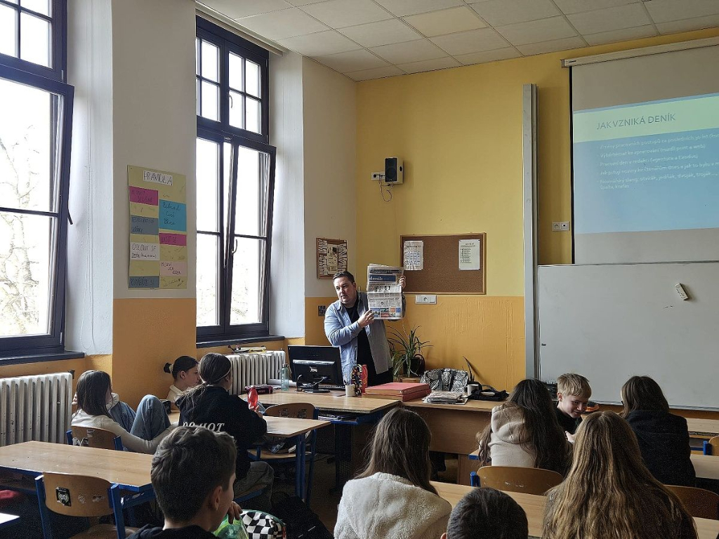 Dne 12. 3. 2025 k nám na školu přišel redaktor Českobudějovického deníku jménem Martin Tröster. Vyprávěl nám, jak se dělaly noviny před 30 lety oproti dnešku a co jeho práce obnáší.