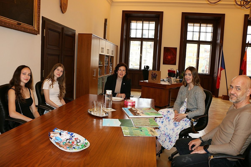 Jsme velice vděčni, že se město znovu podílelo na pokračování tohoto projektu, a proto se žáci rozhodli věnovat městu několik výtvarných děl. Paní primátorka doc. Dr. Ing. Dagmar Škodová Parmová nás dnes přivítala s úsměvem a zástupkyně výtvarného plenéru z osmých tříd měly možnost jí práce předat. Šumavská zákoutí, statky, travnaté louky i smrkové háje vyobrazené na plátnech, paní primátorku potěšily.