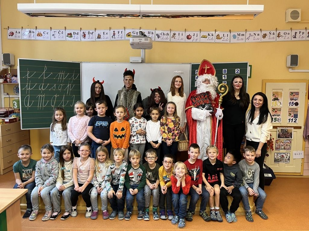 V úterý 5.12. vyrazili nejstarší deváťáci v podobě Mikuláše, čertů a anděla na obchůzku prvního stupně. Mikuláše a jeho doprovod přivítaly děti ve všech třídách písničkou či básničkou.
